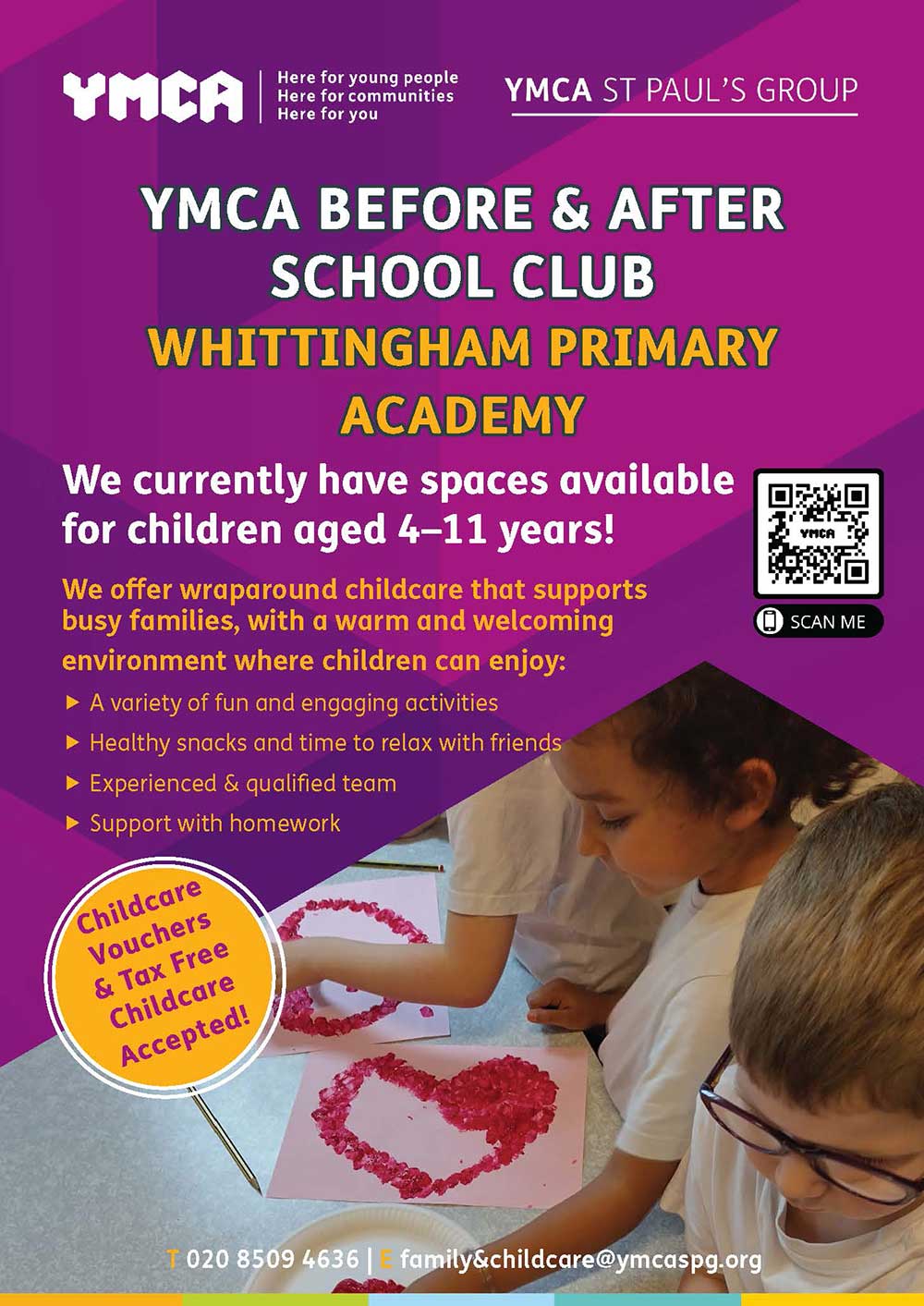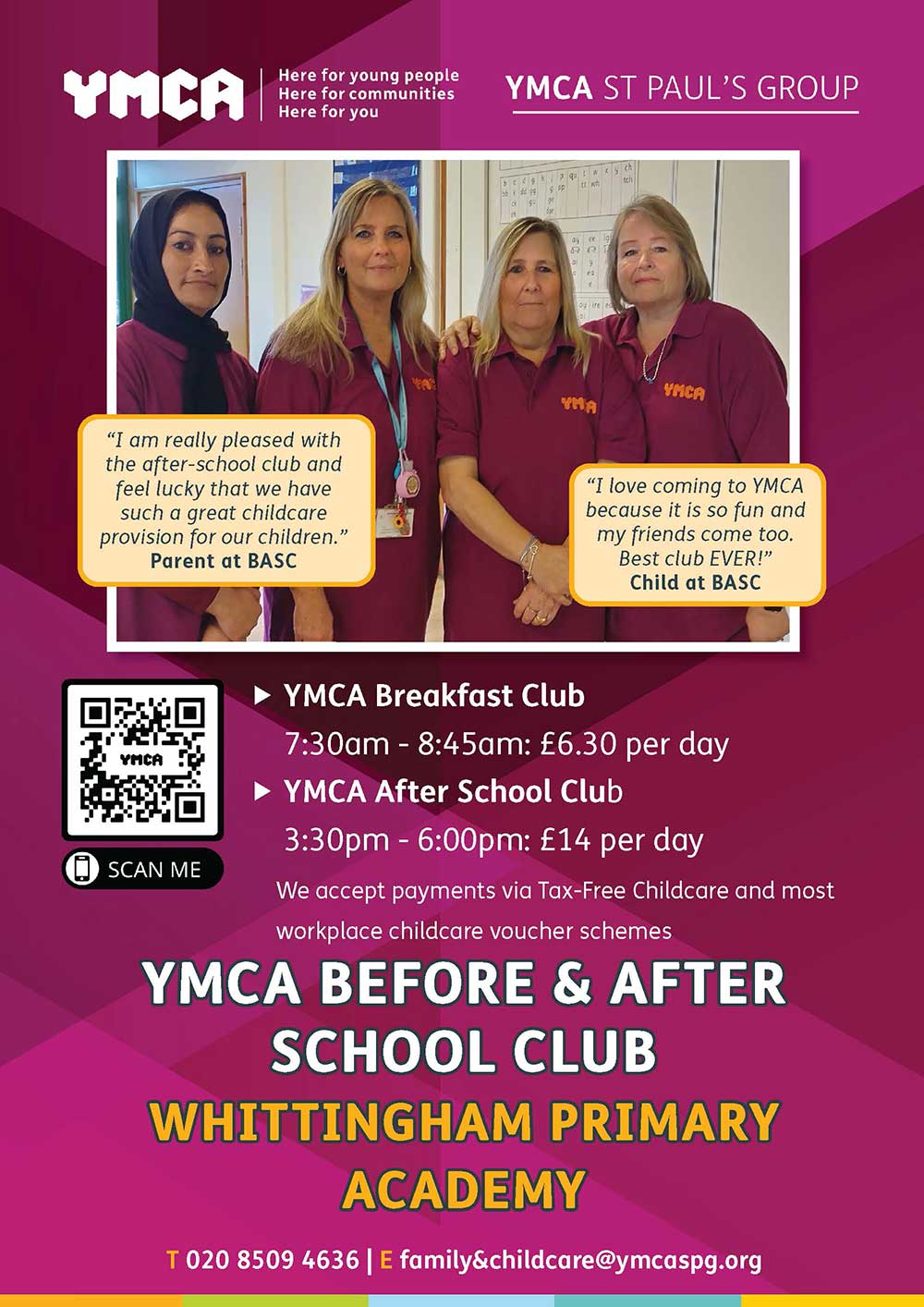 To find out more or secure a place, call 020 8509 4636 or email family&childcare@ymcaspg.org.